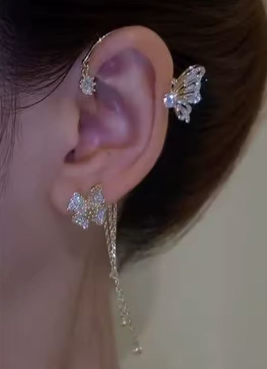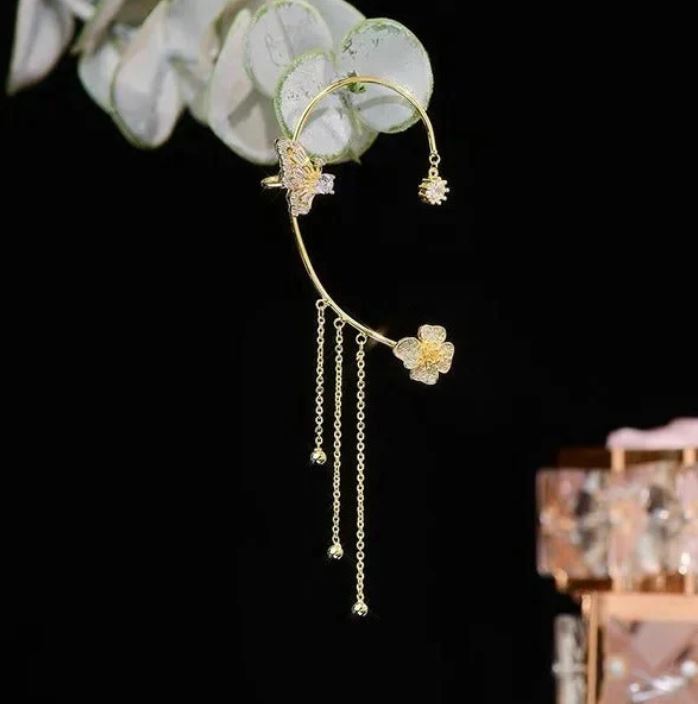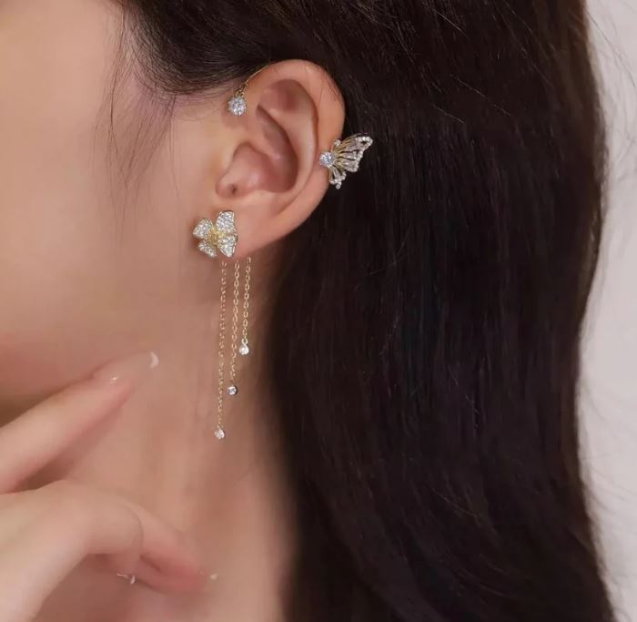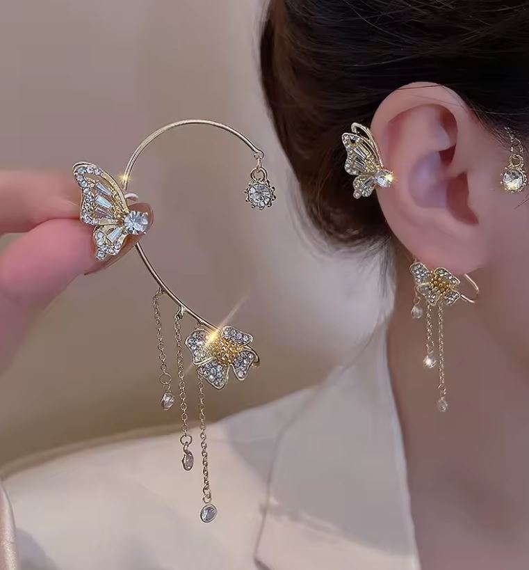 HYVALO | Guldfärgade fjärilsörhängen är vackert designade för att kombinera sofistikering med en touch av fantasi. De är tillverkade med precision och uppmärksamhet på detaljer och har ett delikat fjärilsmotiv som symboliserar förvandling, skönhet och frihet. De är tillverkade av högkvalitativa material, sitter bekvämt och har en bestående glans och hållbarhet. Den unika omslutande stilen smyger sig elegant runt örat och skapar en djärv men feminin look som sticker ut utan ansträngning. Dessa örhängen är perfekta för både vardagsbruk och speciella tillfällen och tillför en fängslande charm som förhöjer vilken look som helst.