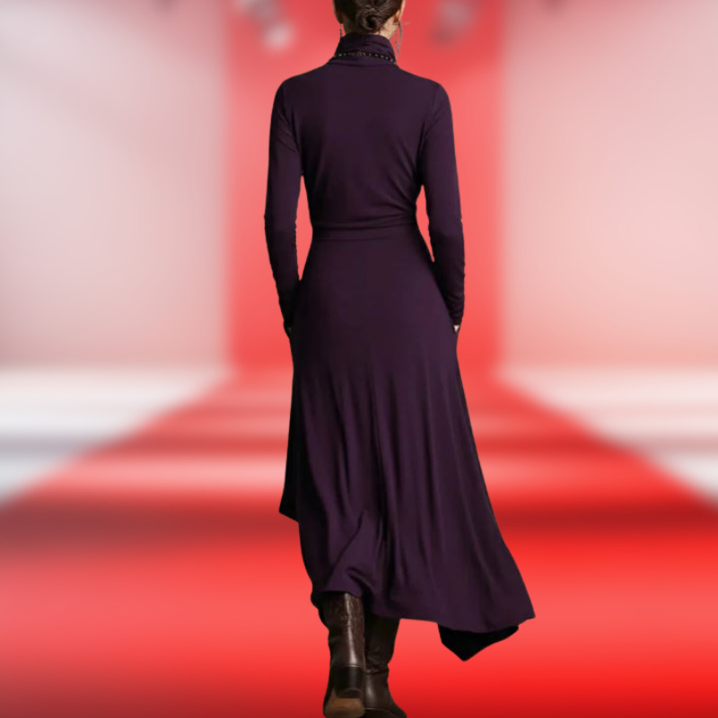 HYVALO-klänningen är formgiven med ett mjukt, flytande snitt och exklusivt utvalda tyger som tillsammans skapar en sofistikerad och tidlös silhuett. Den eleganta polokragen tillför en diskret lyx samtidigt som den erbjuder behaglig komfort. Den långa, skulpterande formen framhäver kroppens naturliga linjer och ger ett självsäkert uttryck – lika självklar för förfinad dagselegans som för upphöjda kvällstillfällen. Ett exklusivt nyckelplagg i den moderna garderoben.